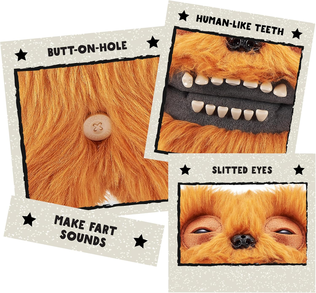 Цей смішний монстр Фуглер по імені Граф Андеру Макгу — справжня знахідка для тих, хто любить незвичайні іграшки з характером! Він має дивовижно людські зуби, м’яке плюшеве тіло та навіть видає смішні пукаючі звуки при русі. Фуглери створені, щоб дивувати й веселити — їхня зовнішність поєднує милість і дивакуватість, а колекціонування цих кумедних монстрів приносить справжнє задоволення. Збери власну колекцію дивакуватих Фуглерів і дізнайся, чи трапиться тобі рідкісний екземпляр із загадковою «butt-on» діркою!