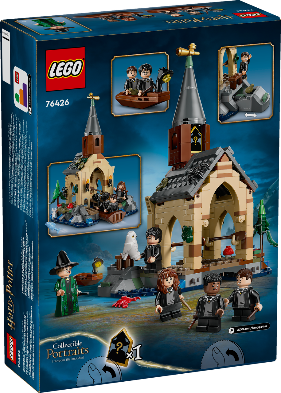 Оживіть незабутню сцену з фільму "Гаррі Поттер і Філософський камінь™", де Гаррі Поттер™ і його друзі вперше прибули в елінг замку Гоґвортс™ (76426) за допомогою цієї фантастичної іграшки для дітей. До набору входять 2 збірні човни, у кожному з яких можна розмістити по 2 мініфігурки, а також елінг із місцем для стоянки човна всередині, схованка для жаби Тревора Невілла Лонгботтома та 1 із 14 представлених колекційних портретів Гоґвортса.